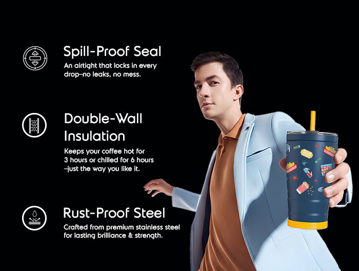 It’s sleek, spill-proof, and super convenient with a flick-open lid that doubles as a straw sipper. The detachable silicone base keeps it steady and scuff-free, while the straw topper ensures hygiene and safety wherever you go.